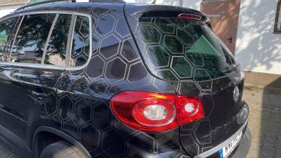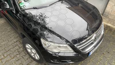 Jedoch hat ein Auto nur wenige, bis keine, glatten Flächen. Zumindest auf den Flächen, an denen ich die Waben anbringen will. Eine gesamte Bahn/Rolle abzuziehen, ergibt hier wenig Sinn.