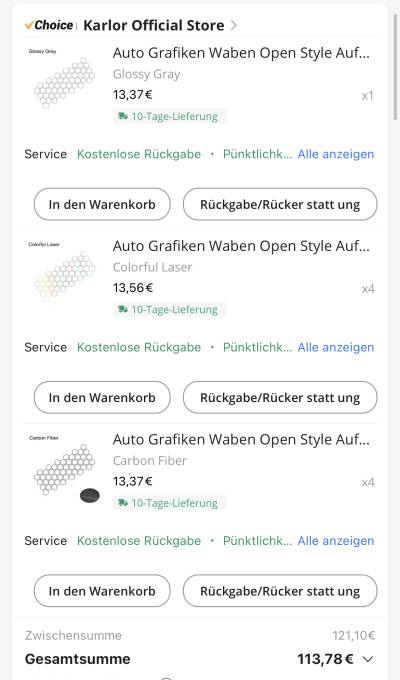 Ohne viel Nachdenken habe ich mir, am 18. Juni 2023, bei AliExpress, die vorgefertigte Folie bestellt. Leider habe ich in der Beschreibung keine Angaben über Menge, Größe, oder sonstiges erlesen können. Wieviele Einheiten benötige ich also? Wer schon einmal in China bestellt hat, wird um die Problematik „Wahrheitsfindung“ wissen.