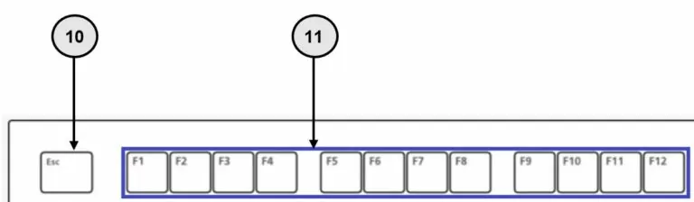 | 10 Esc | Abbruch / Escape: Sie wird verwendet um ein Menü oder ein temporäres Fenster abzubrechen; In Videospielen wird Esc als Menü-Taste oder Pause-Taste verwendet. |