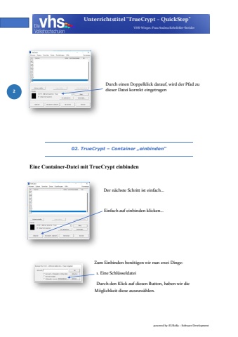 powered by: EURoBa %u2013 Software DevelopmentUnterrichtstitel \VHS-Wirges: FrauAndrea Kehrl%u00f6%u00dfer-Str%u00f6der2Durch einen Doppelklick darauf, wird der Pfad zu dieser Datei korrekt eingetragen02. TrueCrypt %u2013 Container %u201eeinbinden%u201cEine Container-Datei mit TrueCrypt einbindenDer n%u00e4chste Schritt ist einfach%u2026Einfach auf einbinden klicken%u2026Zum Einbinden ben%u00f6tigen wir nun zwei Dinge:1. Eine Schl%u00fcsseldateiDurch den Klick auf diesen Button, haben wir die M%u00f6glichkeit diese auszuw%u00e4hlen.